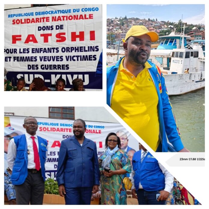 Ce Tshisekediste par conviction conduit une délégation des humanitaires dans la province du Sud-Kivu avec dans sa gibecière des wax  pour les femmes déplacées de guerre et des kits scolaires pour les orphelins et victimes des conflits armés, achevant ainsi les activités menées à travers le pays au cours de l’année 2024, en réponse à l’appel du chef de l’État, Félix Antoine Tshisekedi, à la solidarité nationale.